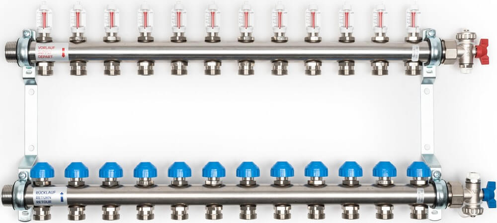- 1 x Dynamischer Heizkreisverteiler «Premium» aus Edelstahl, 12 Heizkreise