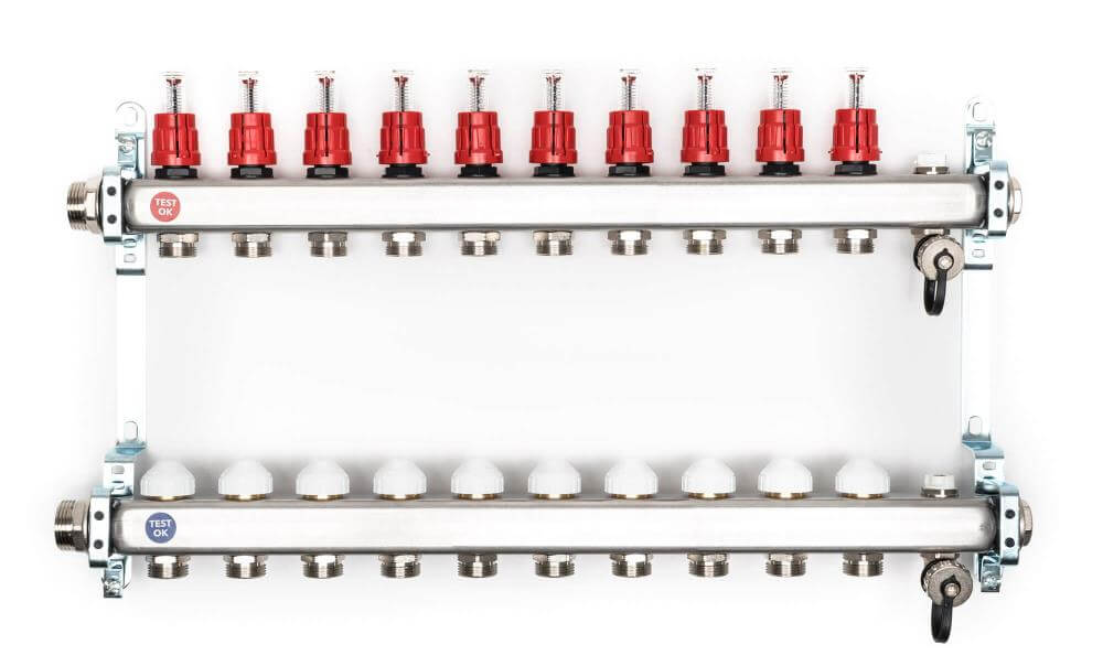 - 1 x Heizkreisverteiler aus Edelstahl für 10 Heizkreise