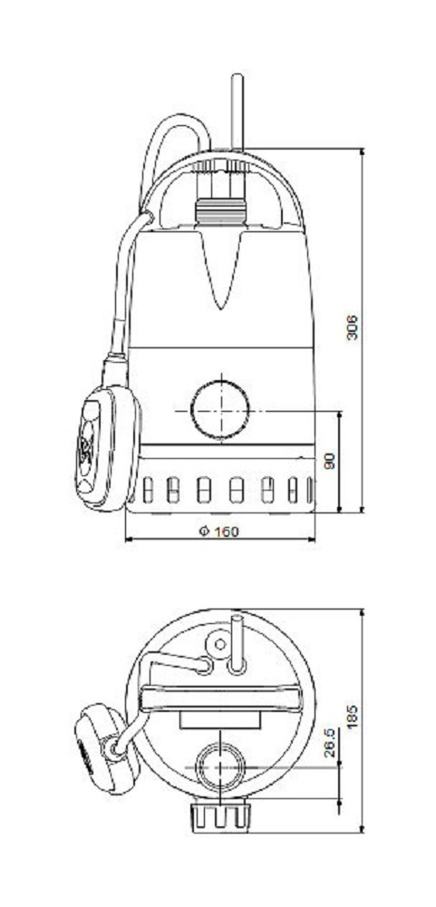 Einstufige Kellerentwässerungspumpe für Schmutzwasser ohne langfaserigeBestandteile. Aus korrosionsbeständigerKomposit-Edelstahl-Kombination mitKühlmantel und vertikalemDruckstutzen. Einsatzfertig mitTragegriff, Selbstentlüftung,abnehmbarem Siebfuß zurFlachabsaugung, Netzkabel mitSchutzkontaktstecker undSchwimmerschalter.Zusätzlich im Lieferumfang: AbgestuftesAdapterstück mit Aussengewinde in 3/4',1' und 1 1/4' und Rückschlagklappe fürtransportablen Einsatz.S1 Betrieb bei aufgetauchtem Motor durchMotormantelkühlung. Aussetzbetrieb >20Schaltspiele pro Stunde im ausgetauchtenZustand.Flachabsaugung bis 3 mm Wasserstand ohneZusatzteile.Tauchmotor mit eingebauten Thermoschal-ter als Motorschutz bei Trockenlauf undBlockierung. Feuchtigkeitsschutz desMotors durch hermetische Kapselung.Dauerfettgeschmierte Kugellager,Dichtung mediumseitig mit doppeltenRadialwellendichtringenmit Keramikbuchse für längere Standzeit.Einfacher Radialwellendichtring zumMotor.Dazwischenliegende Sperrkammer mitSpezialfett als Trockenlaufschutz.Netz- und Schwimmerschalterkabel mithermetischer Abdichtung zum Motor.Verstellbare Schaltpunkteüber Schwimmerschalterfixierung amGriff.Selbstentlüftung zum sicheren Anlauf beitrocken gefallenem Pumpensumpf.