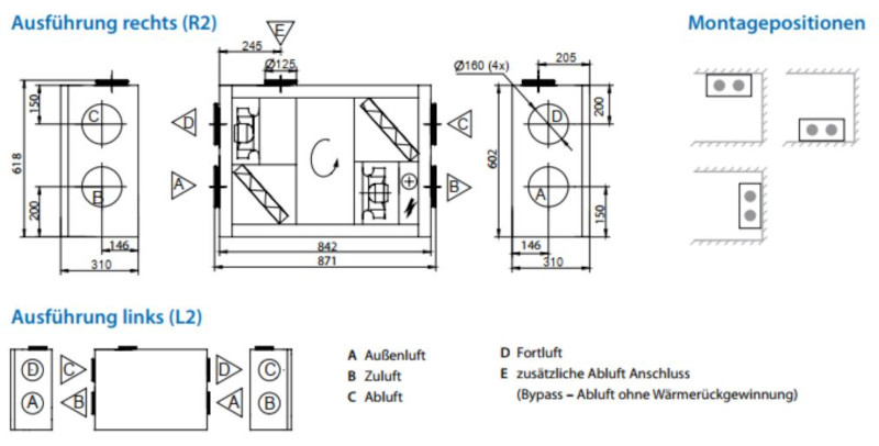 Lüftungsgerät Vent R-250, Ausführung Rechts