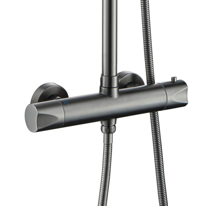Home Perfect | Thermostat-Duschgarnitur | mit Kopfbrause | Grau gebürstet
