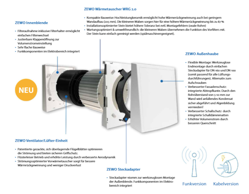 - Drahtloses Wohnraumlüftungssystem mit Wärmerückgewinnung.