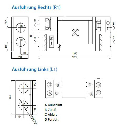 | Wärmerückgewinnung: | Kreuz-GegenstromWärmetauscher |