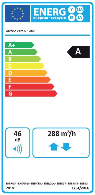 | Spezifische Leistungsaufnahme SEL: | 0,29 W/(m³/h) |