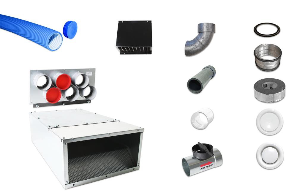 Zentrale Wohnraumlüftung Rohbauset ohne Lüftungsgerät, 250 m²