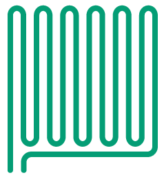 Die Heizrohre können schlingenförmig (mäanderförmig) oder in spiralförmig (schneckenförmig bzw. bifilar) verlegt werden.