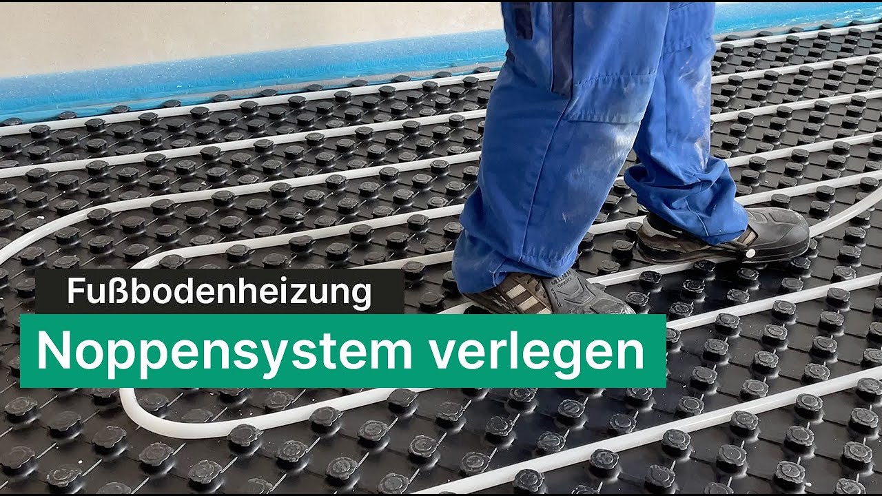 Das Noppensystem ist ein Nasssystem, bei dem die wasserführenden Heizrohre auf einer Dämmschicht verlegt und abschließend in den Estrich eingegossen werden. Es eignet sich insbesondere für Neubauten, kann aber auch bei Renovierungen zum Einsatz kommen, wenn es die Aufbauhöhe erlaubt.